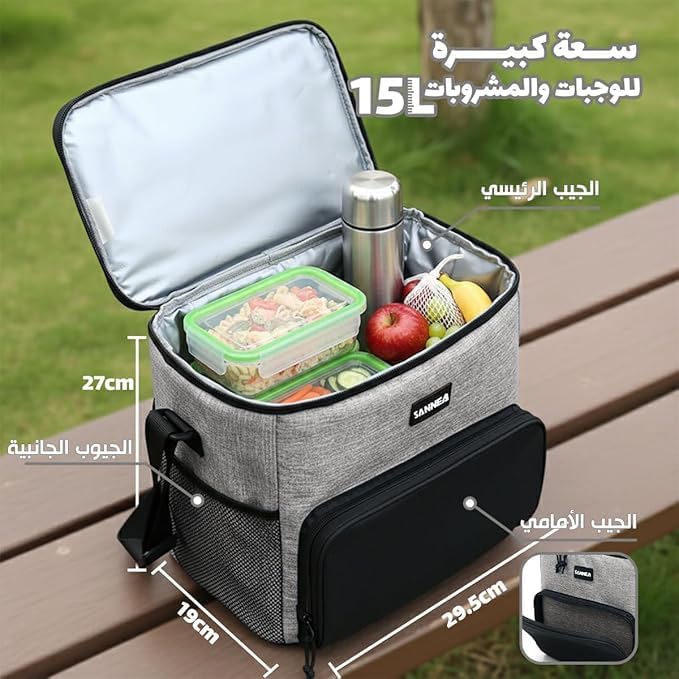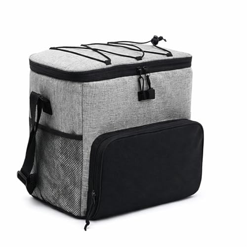 Generic - لانش باج معزولة بسعة كبيرة 15 لتر، مبرد حراري مقاوم للماء مع حزام كتف قابل للتعديل للعمل والمدرسة والسفر والنزهات والتخزين الساخن والبارد، رمادي، BB-514