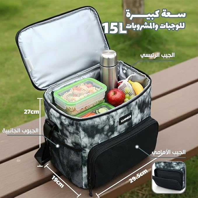- شنطة غداء معزولة بتصميم مبرد حراري (15 لتر) تساعد على الحفاظ على الوجبات ساخنة أو باردة لفترة أطول - مثالية لوجبات الغداء المكتبية والوجبات الخفيفة المدرسية وأيام التنقل.