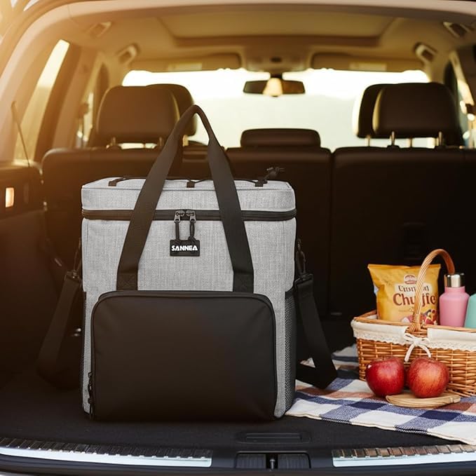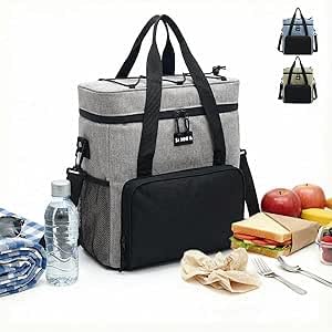 Generic - شنطة غداء معزولة بسعة كبيرة 24 لتر، مبرد حراري مقاوم للماء مع حزام كتف قابل للتعديل للعمل والمدرسة والسفر والنزهات، تخزين ساخن وبارد، BB-515 (رمادي)