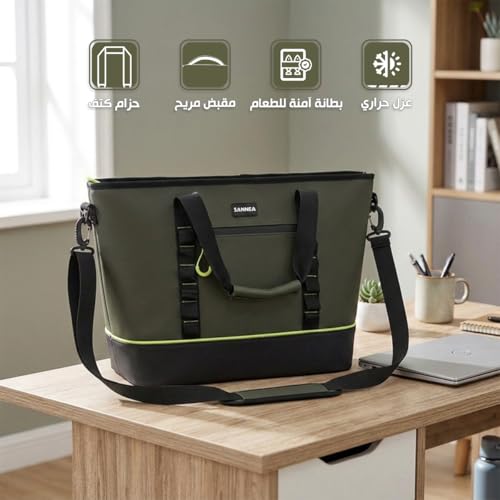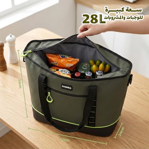 Hanso 1 - شنطة غداء معزولة سعة 28 لتر، شنطة تبريد حرارية مقاومة للماء والتسرب مع حزام كتف، سعة كبيرة للعمل والمدرسة والنزهات والسفر وهانسو، BB-557