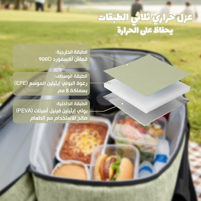 - سعة كبيرة 30 لتر: قم بتعبئة الوجبات والوجبات الخفيفة والمشروبات في حامل حراري واسع واحد للنوبات الطويلة أو أيام الدراسة أو الرحلات العائلية أو يوم كامل في الخارج.