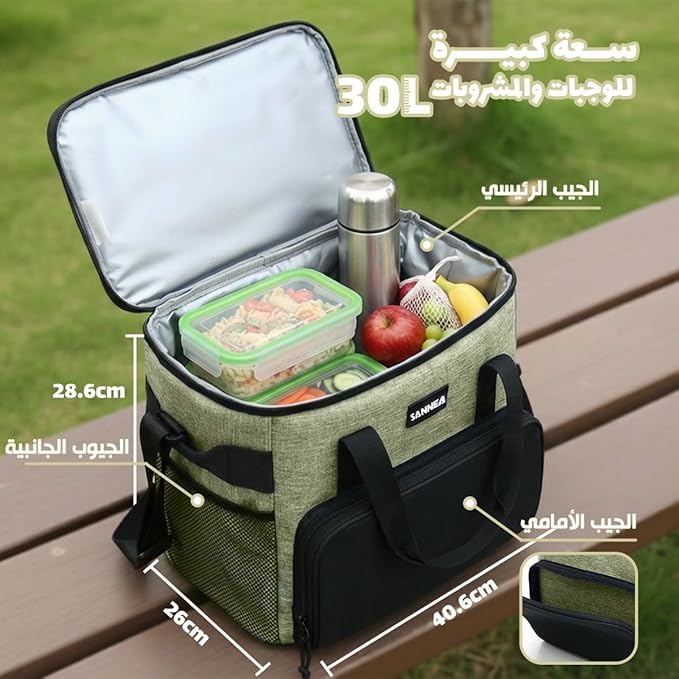 Generic - شنطة غداء معزولة بسعة كبيرة 30 لتر، مبرد حراري مقاوم للماء مع حزام كتف قابل للتعديل للعمل والمدرسة والسفر والنزهات، تخزين ساخن وبارد، BB-516 (اخضر)