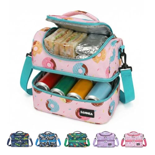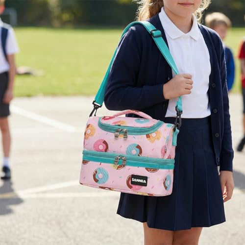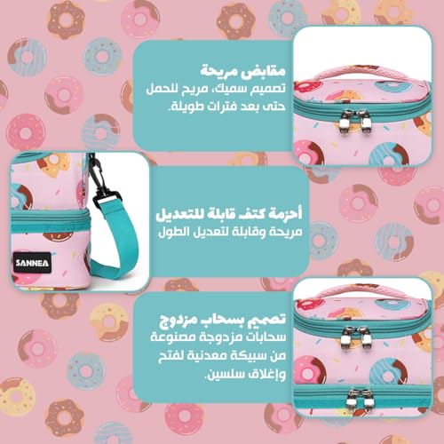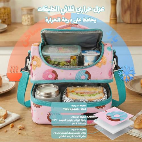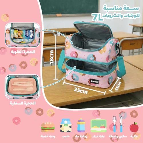 Generic - شنطة غداء معزولة سعة 7 لتر، مبرد حراري مع قسمين، حامل صندوق غداء مقاوم للتسرب ومقاوم للماء، شنطة تخزين وجبات قابلة لاعادة الاستخدام للعمل والمدرسة والنزهات والسفر BB-541 (زهري واخضر)
