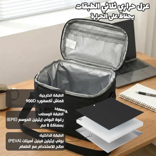 Generic - شنطة غداء معزولة سعة 7 لتر، مبرد طعام حراري مقاوم للماء والتسرب، شنطة غداء صغيرة للتخزين الساخن والبارد والسفر والنزهات BB-534 (اسود)