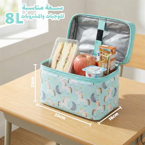 Generic - شنطة غداء معزولة سعة 8 لتر مقاومة للماء ومانعة للتسرب لتخزين الطعام للوجبات الساخنة والباردة والعمل والمدرسة والسفر والنزهات BB-545 (يونيكورن)