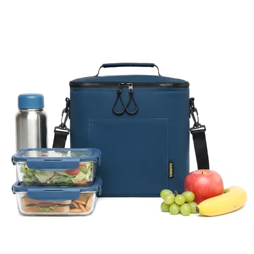 Hanso 1 - حقيبة غداء معزولة سعة 9 لتر، صندوق غداء حراري مبرد، جزء خارجي مقاوم للماء، بطانة مقاومة للتسرب، حقيبة تخزين الطعام للعمل والمدرسة والمكتب والنزهات والسفر BB-538 (ازرق)