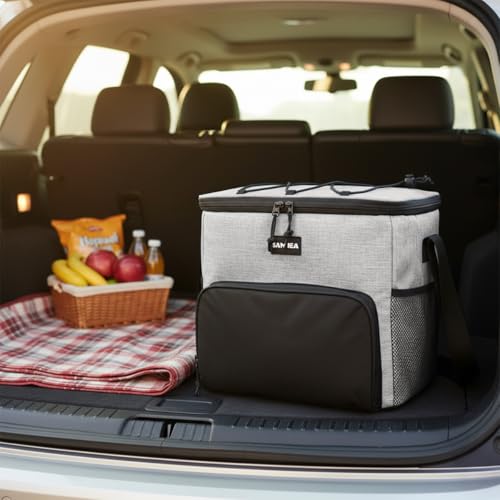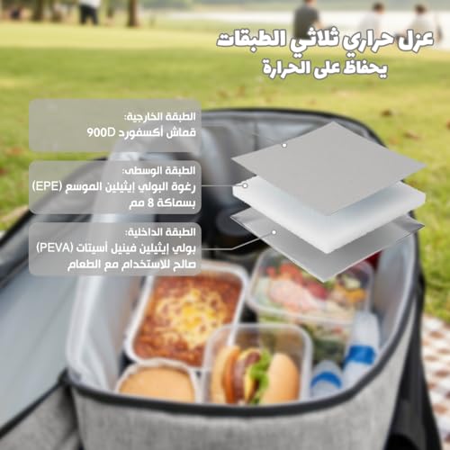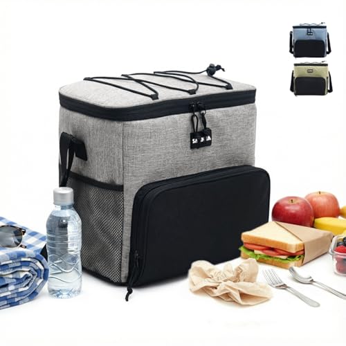 Generic - لانش باج معزولة حراريًا بسعة كبيرة، شنطة تبريد مبطنة مزدوجة مقاومة للمياه لحمل الطعام مع حزام كتف قابل للتعديل للعمل والمدرسة والسفر والنزهات وتخزين الأطعمة الساخنة والباردة، BB-514 (رمادي، 15 لتر)