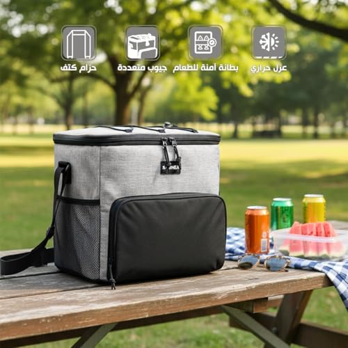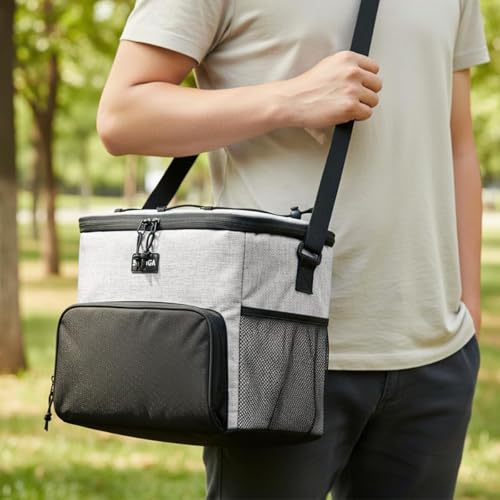 Generic - شنطة غداء معزولة بسعة كبيرة، شنطة تبريد حرارية مقاومة للماء مع حزام كتف قابل للتعديل للعمل والمدرسة والسفر والنزهات، تخزين ساخن وبارد، BB-514 (رمادي، 15 لتر)
