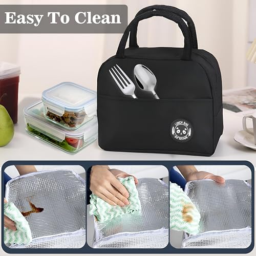 - التنظيف سهل بفضل بطانة فويل الألومنيوم. كل ما يتطلبه الأمر هو المسح البسيط بقطعة قماش مبللة للحفاظ على المظهر الداخلي نظيفًا وصحيًا، مما يجعله مثاليًا للاستخدام اليومي. يضيف التصميم المانع للتسرب مع الطبقات الداخلية الملحومة بالحرارة طبقة إضافية من الراحة، مما يمنع الانسكابات والفوضى. يمكن تنظيف الانسكابات العرضية بسهولة بقطعة قماش مبللة، مما يجعل هذه الشنطة مريحة للغاية.