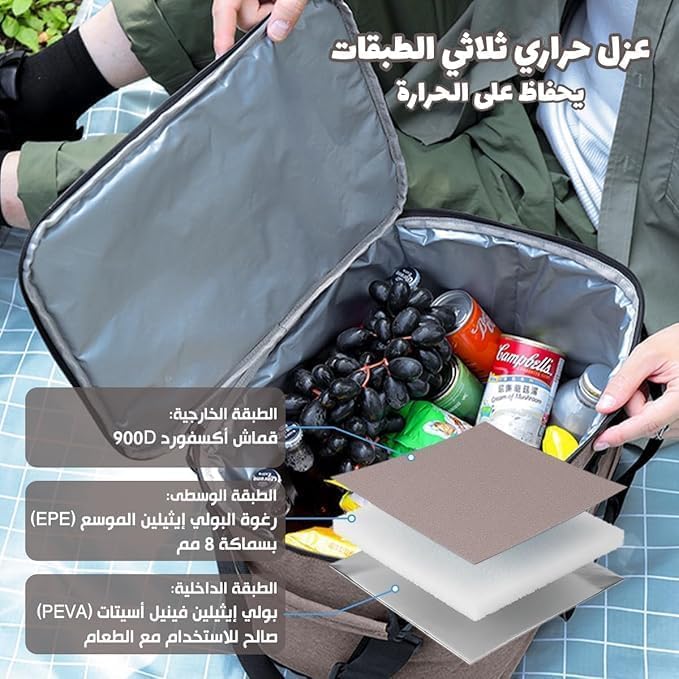 - سعة معزولة كبيرة 25 لتر: قم بتعبئة الغداء والمشروبات والوجبات الخفيفة في حقيبة تبريد حرارية واحدة تساعد على الحفاظ على درجة الحرارة للوجبات الساخنة أو الباردة من المنزل إلى المكتب أو الجامعة أو المترو.