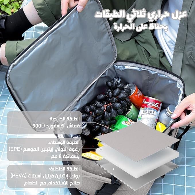 - سعة معزولة كبيرة 25 لتر: قم بتعبئة الغداء والمشروبات والوجبات الخفيفة في حقيبة تبريد حرارية واحدة تساعد على الحفاظ على درجة الحرارة للوجبات الساخنة أو الباردة من المنزل إلى المكتب أو الجامعة أو المترو.