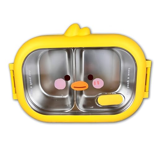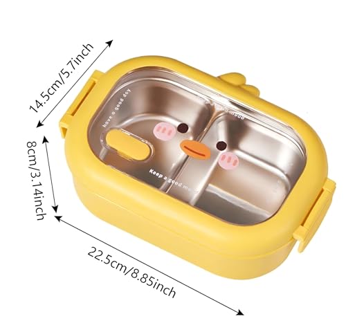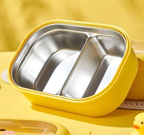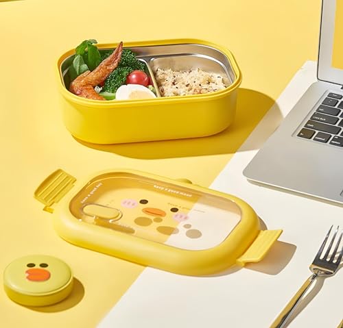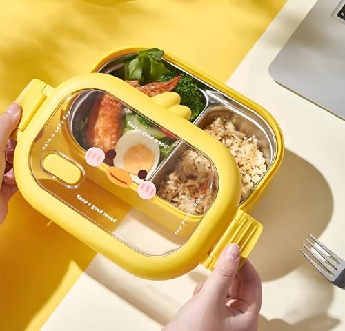 Generic - لانش بوكس معزول - حاوية مقسمة بلون اصفر مع مساحات تخزين من الستانلس ستيل والبلاستيك، زر تهوية سيليكون، غطاء اكريليك شفاف لتخزين الطعام بشكل آمن.