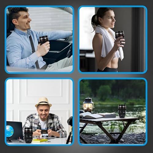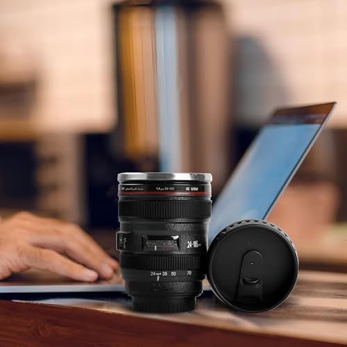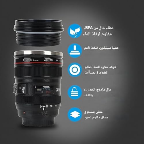 Generic - مج معزول - كوب قهوة من الستانلس ستيل مستوحى من عدسة الكاميرا مع غطاء مبطن، سعة 400 مل، مثالي للمشروبات الساخنة والماء واللحظات الاجتماعية مع الأصدقاء بتصميم انيق