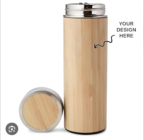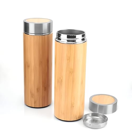 Generic - زجاجة معزولة من الستانلس ستيل والخيزران - حاوية مشروبات معزولة بتفريغ الهواء بجدار مزدوج تحافظ على السخونة لأكثر من 12 ساعة وباردة لأكثر من 9 ساعات، 500 مل، لمسة نهائية من الخشب الطبيعي (قطعة 2)