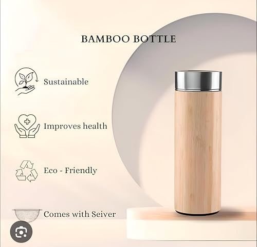 - مصنوعة بالكامل من الخيزران الطبيعي العضوي بنسبة 100% والستانلس ستيل الآمن غذائيًا 18/8، هذه الزجاجة الصديقة للبيئة تقاوم النفايات البلاستيكية ولا تحتوي على سموم أو روائح ضارة، مما يضمن بقاء مشروباتك نقية وغير ملوثة.