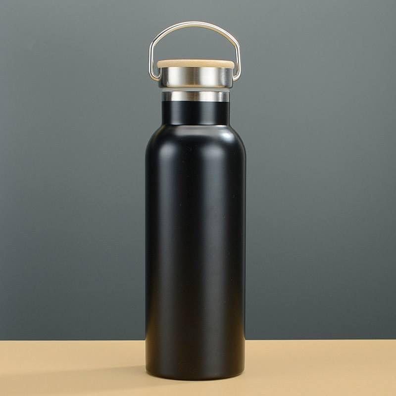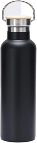 Generic - زجاجة مياه معزولة من الستانلس ستيل مع غطاء ومقبض بنمط الخيزران - قارورة حرارية معزولة بتفريغ الهواء للمشروبات الساخنة والباردة، زجاجة مياه معدنية قابلة لاعادة الاستخدام مانعة للتسرب لصالة الالعاب