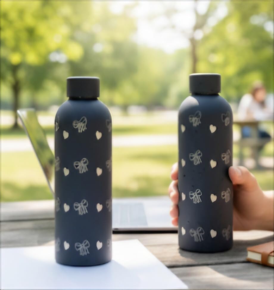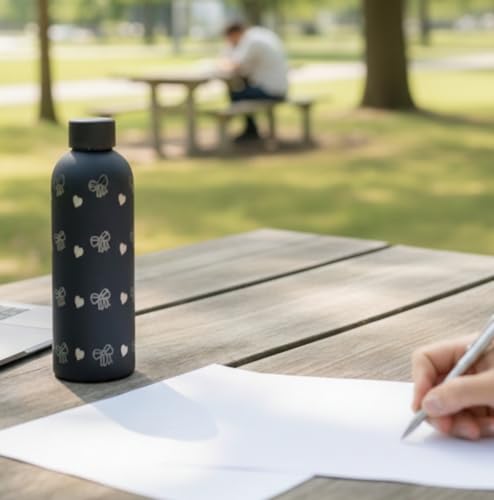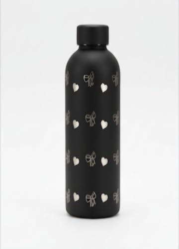Generic - زجاجة مياه معزولة من الستانلس ستيل بنمط نحلة وقلب، اسود، 500 مل، مانعة للتسرب لصالة الالعاب الرياضية والمكتب والسفر