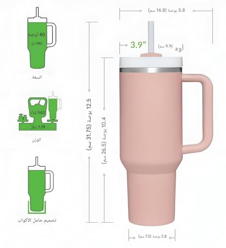 - كوب معزول من الفولاذ المقاوم للصدأ: مصنوع من الفولاذ المقاوم للصدأ 304 الآمن غذائيًا، يضمن كوب القهوة المصنوع من الفولاذ المقاوم للصدأ الخاص بنا الثبات ومقاومة الصدأ دون وجود طعم معدني. بفضل تصميم جدار تفريغ الهواء المزدوج، يضمن هذا الكوب المعزول بسعة 1.2 لتر العزل الأمثل، مما يحافظ على المشروبات الساخنة ساخنة لمدة تصل إلى 7 ساعات والمشروبات الباردة باردة لمدة تصل إلى 11 ساعة. إذا كنت تبحث عن الاستمتاع بالمشروبات المثلجة، فإن هذا الكوب سيلبي احتياجاتك، مما يحافظ على مشروباتك مثلجة لمدة تصل إلى يومين.