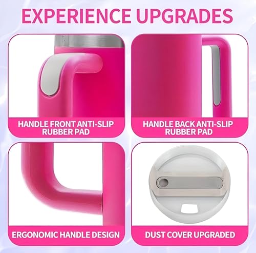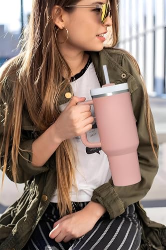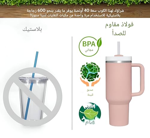 Generic - كوب سفر معزول من الفولاذ المقاوم للصدأ - زجاجة مياه مانعة للتسرب سعة 1183 مل مع مقبض وماصة للمشروبات الساخنة والمثلجة، مريحة للسفر والاستخدام الخارجي (4 قطع)