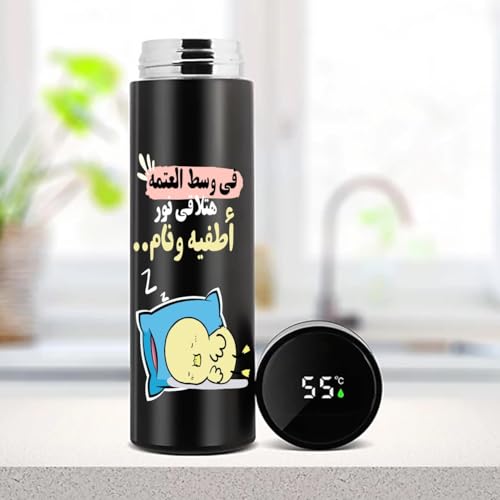 Generic - مج حراري معزول بشاشة ديجيتال - أسود - ملصق مقاوم للماء - طباعة على جانب واحد - تصميم كوميدي بعبارة في وسط العتمة هتلاقي نور - نحن نطبع هديتك