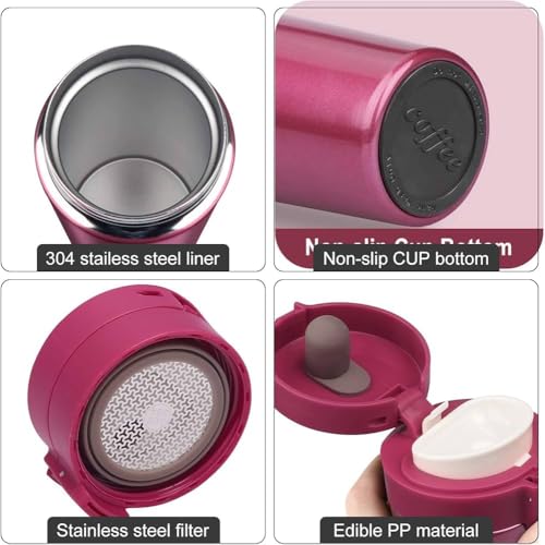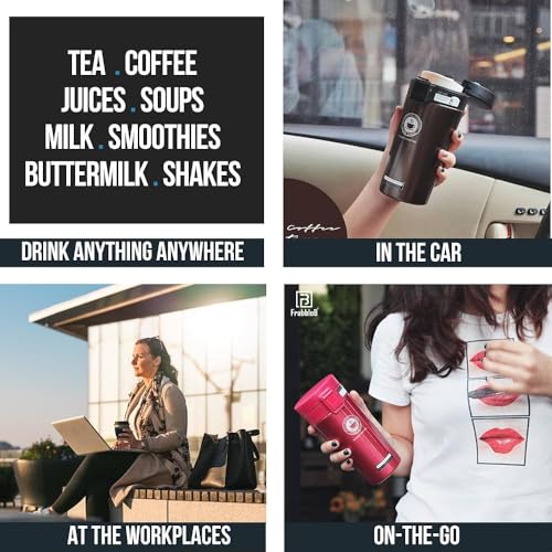 Generic - مج قهوة معزول حراريا للسفر، بجدار مزدوج من الفولاذ المقاوم للصدأ وغطاء مانع للتسرب، تحكم في درجة الحرارة 6 ساعات، 380 مل