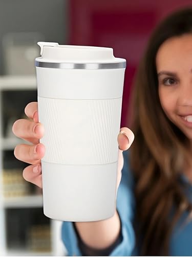 Generic - كوب سفر حراري معزول 510 مل (Tumbler) – ستانلس ستيل 304 عالي الجودة – عزل مزدوج – غطاء مانع للتسرب – مناسب للسيارة والمكتب والسفر (أبيض)