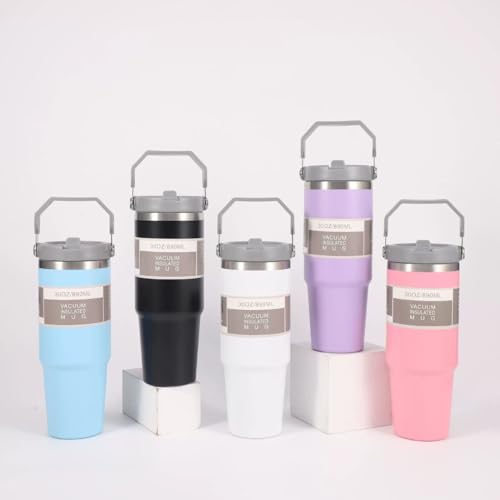 Generic - كوب معزول سعة 900 مل/30 اونصة مع ماصة ومقبض علوي، يحافظ على البرودة بغطاء 2 في 1 مانع للتسرب للشاي البارد والساخن، امن للاستخدام غسالة الصحون (متعدد الالوان)، ستانلس ستيل