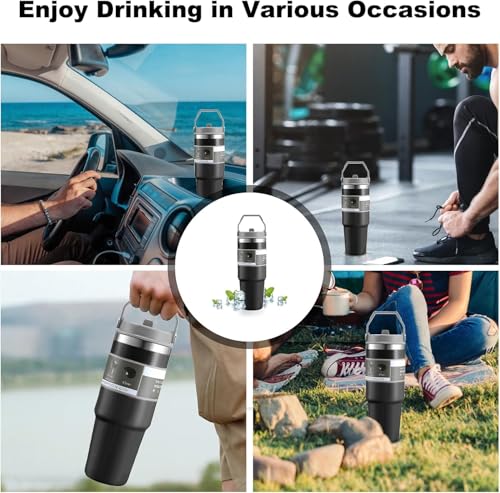 - كوب معزول بسعة 900 مل مع شفاطة ومقبض علوي، يحافظ على البرودة لمدة 24 ساعة، غطاء مقاوم للتسرب 2 في 1 للمشروبات الباردة الغازية والشاي الساخن، آمن للغسل في غسالة الأطباق