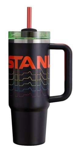 Generic - كوب معزول حراريا مع مقبض، سعة ١٢٠٠ مل، متعدد الألوان، مع غطاء محكم وقش للشرب