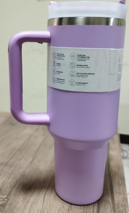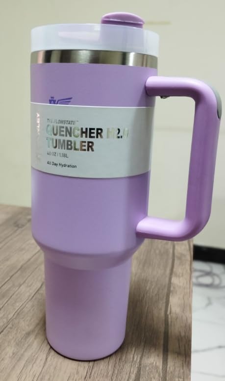 Generic - كوب معزول بمقبض وغطاء بشفاطة، كوب معزول مزدوج قابل لإعادة الاستخدام من الفولاذ المقاوم للصدأ، زجاجة مياه مانعة للتسرب مناسبة للجيم والسفر ، سعة 1200 مل، لون بنفسجي