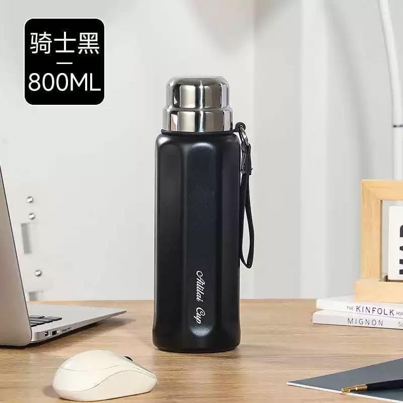 Spaceshoop - زجاجة حرارية معزولة بتفريغ الهواء سعة 800 مل مع كوب، زجاجات قهوة من الفولاذ مقاوم للصدأ للمشروبات الساخنة والباردة (أسود)