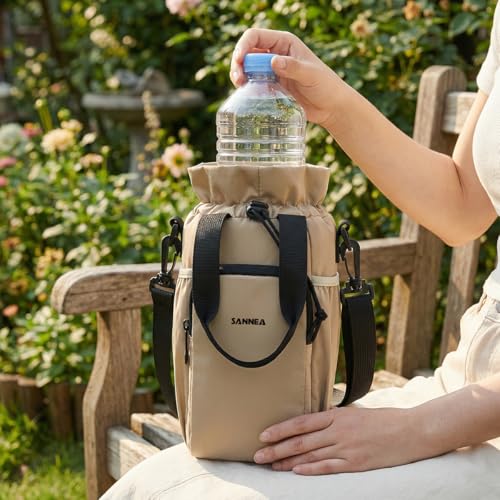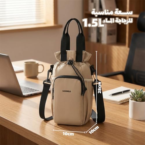 Generic - زجاجة مياه معزولة وشنطة طعام سعة 1.5 لتر، حامل حراري مقاوم للماء ومانع للتسرب للمشروبات الساخنة والباردة والوجبات والعمل والمدرسة والنزهات والسفر BB-532 (بيج)