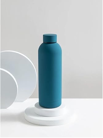 Generic - زجاجة مياه معزولة خالية من مادة بيسفينول أ ومصنوعة من فولاذ مقاوم للصدأ للمشروبات الباردة والساخنة، زجاجة بجدار مزدوج ومانعة للتسرب للاستخدام الخارجي والمدرسة والعمل، 500 مل، أزرق