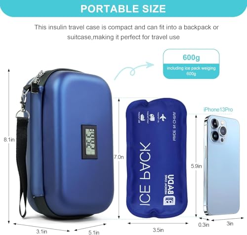 Generic - حافظه تبريد الإنسولين لـ 24 ساعة للسفر، مبرد أدوية لمرضى السكر مع شاشة عرض درجة الحرارة، شنطة لوضع الأدوية بشكل منظم مع عبوتي ثلج