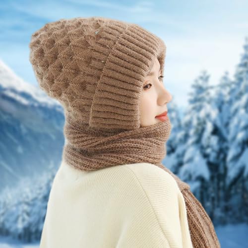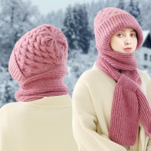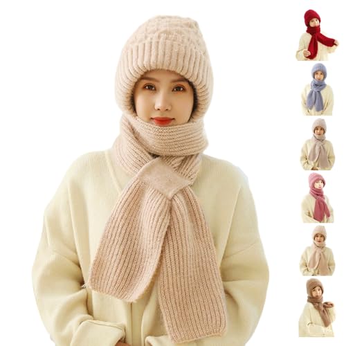 Drkicsy - قبعة ووشاح للحماية من الرياح لحماية الاذن، قبعة دافئة ووشاح، مجموعة تدفئة الاذن للنساء، وشاح قبعة صغيرة محبوك سميك محبوك