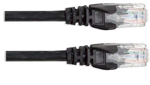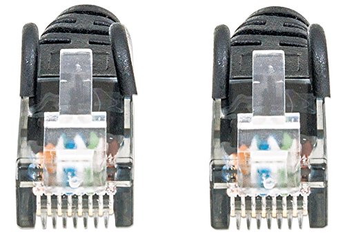Manhattan - كابل توصيل شبكة كات6 الومينيوم مغطى بنحاس CCA مزدوج مجدول غير محمي U/UTP بعازل بلاستيك بي في سي وموصل ار جيه 45 بموصلات مطلية ذهب مغلف بالبولي وبغطاء واقي وحماية لسن التثبيت من انتلينت، 3 متر/اسود