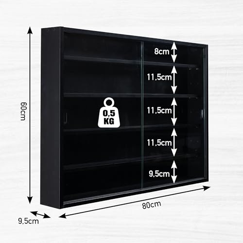 Inter Link - دولاب عرض زجاجي يثبت على الحائط، رف تعليق من خشب ام دي اف من انتر لينك، أسود (80 × 60 × 9.5 سم)
