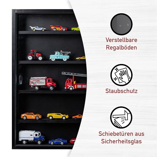 - التصميم: دولاب عرض معلق مع 4 أرفف داخلية. ستجد في دولاب العرض هذا مساحة كافية لعرض أغراضك المفضلة بأناقة مثل مجسمات السيارات أو التماثيل أو المجوهرات. يتكيف البابان الزجاجيان المنزلقان بشكل مثالي مع هيكل دولاب العرض.