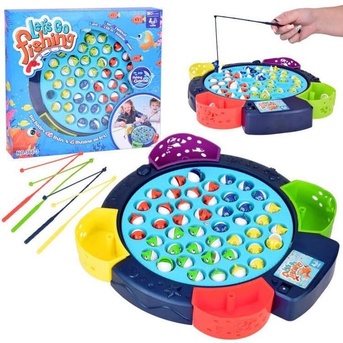 Generic - لعبة صيد كهربائية تفاعلية للاطفال - تعمل بالبطارية مع موسيقى واضواء - تتضمن 45 سمكة ملونة و4 قضبان صيد - لعبة مهارات تعليمية للعائلة