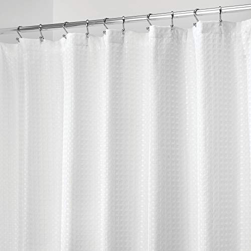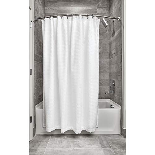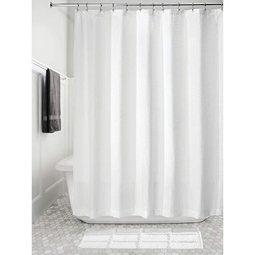 InterDesign - ستارة حمام قماشية بنمط نسيج الوافل من انترديزاين، بتصميم فندقي، مناسبة للحمامات الرئيسية والضيوف وحمامات الأطفال وأحواض الاستحمام والمساحات المخصصة للاستحمام، لون أبيض