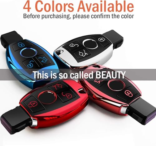 Intermerge - جراب حماية ناعم الملمس مصنوع من البولي يوريثين المقاوم للحرارة لمفتاح السيارة مع علاقة للمفاتيح لا تتضمن المفاتيح من انتيرميرج، مناسب لسيارة مرسيدس بنز سي واي واس وام وسي ال اس وسي ال كيه وجي كلاس