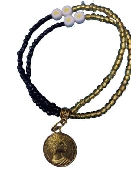 Generic - أسورة من خرز التفسيره لونين مختلفين بفواصل ذهبيه مع اللولي، للنساء