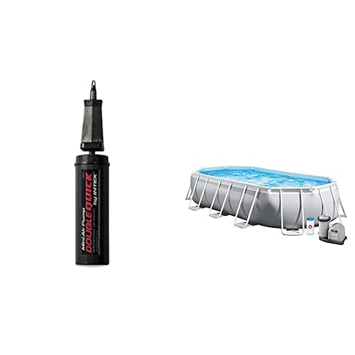 Intex - منفاخ هواء يدوي انتيكس 69613 من انتيكس 69613 + مجموعة حمام سباحة بيضاوي بإطار بريزم من انتيكس - رمادي فاتح - 26796