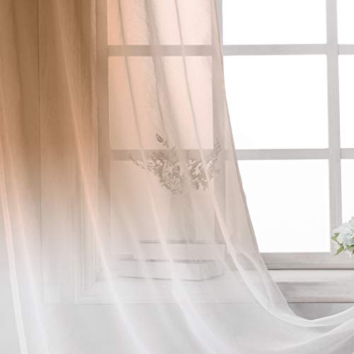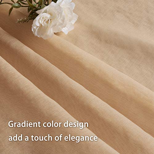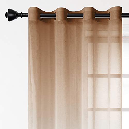 INtex CURTAINS HOUSE - ستائر فاخرة متدرجة اللون للمنزل من نسيج الفوال الشفاف انتكس كارتينز هاوس مع حلقات تثبيت ستيل- قطعة واحدة بلون بني 300 سم عرض × 230 طول سادة كتان صناعي بيت الستائر