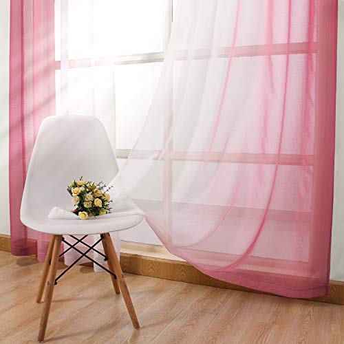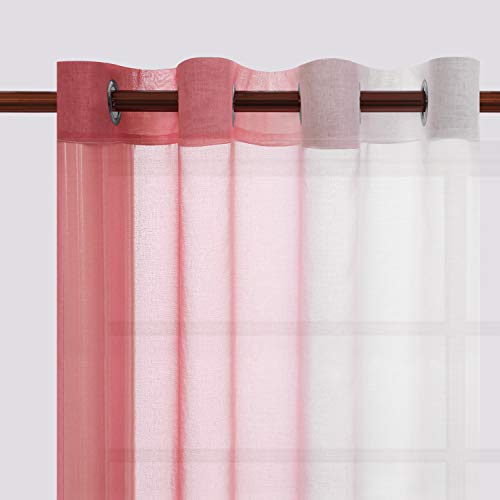 INtex CURTAINS HOUSE - ستائر من الفوال والشيفون بتصميم حديث انتكس كورتينز هاوس متدرجة اللون بحلقات للتثبيت الستيل لغرفة المعيشة وغرفة النوم قطعتين لون بينك 500 عرض × 270 طول زهري سادة كتان صناعي بيت الستائر