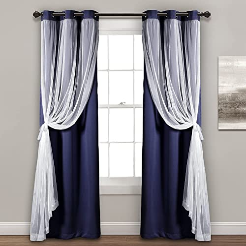 INtex CURTAINS HOUSE - زوج ستائر من الفوال الشفاف مع ستارة داكنة معزولة لتعتيم الغرفة حلقة تثبيت فولاذية قوية مجموعة 1 العرض 150 سم × الطول 230 لون كحلي انتكس بيت الستائر سادة 150W x 230L CM بلاستيك معدن قماش فولاذ