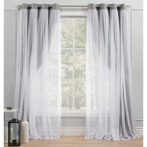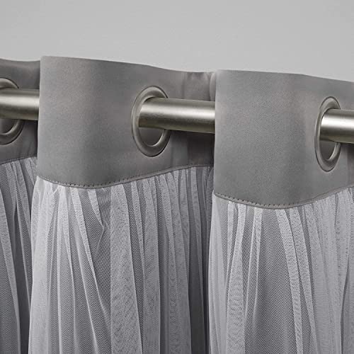 INtex CURTAINS HOUSE - زوج ستائر من الفوال الشفاف مع ستارة داكنة معزولة لتعتيم الغرفة حلقة تثبيت فولاذية قوية مجموعة 1 العرض 200 سم × الطول 250 لون رمادي انتكس بيت الستائر بلاستيك معدن قماش فولاذ سادة