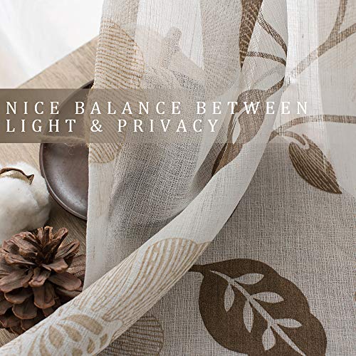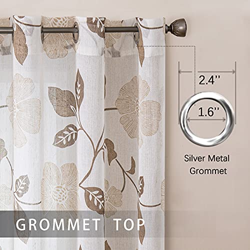 INtex Curtains - ستائر فاخرة شبه شفافة بعرض 150 سم وطول 230 مزينة بشكل ورود مصنوعة من كتان طبيعي ومزودة بحلقات فضية للتثبيت لغرفة المعيشة وغرفة النوم والمطابخ انتكس كيرتنس هاوس، قطعة واحدة - بني، رائحة الزهور
