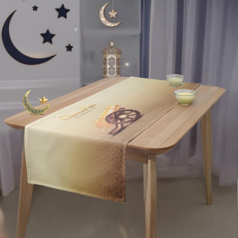 INTex HOME - مفرش طاولة من تشكيلة ليالي رمضان من انتكس هوم ديكور رمضاني فخم لطاولة الطعام. ناعم وفاخر ومقاوم للتجاعيد.