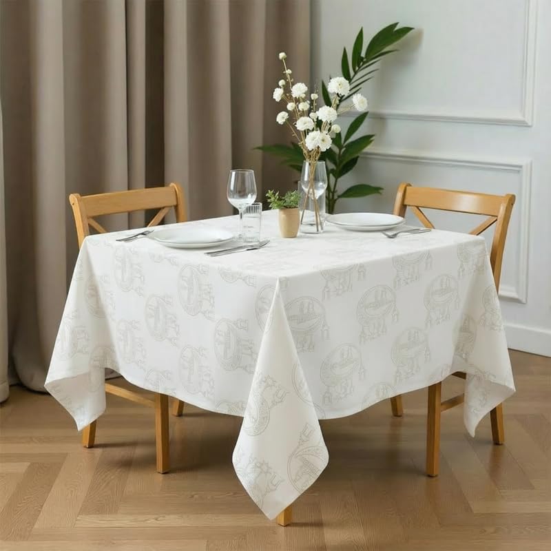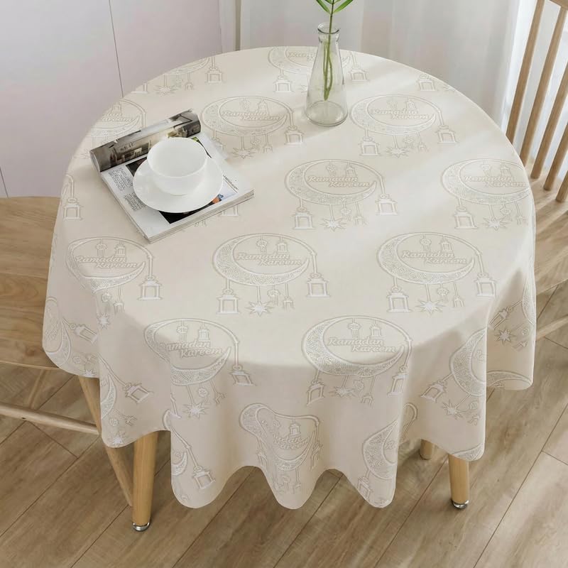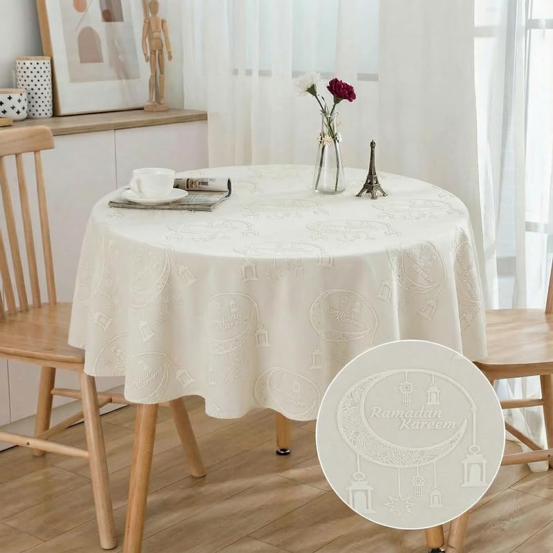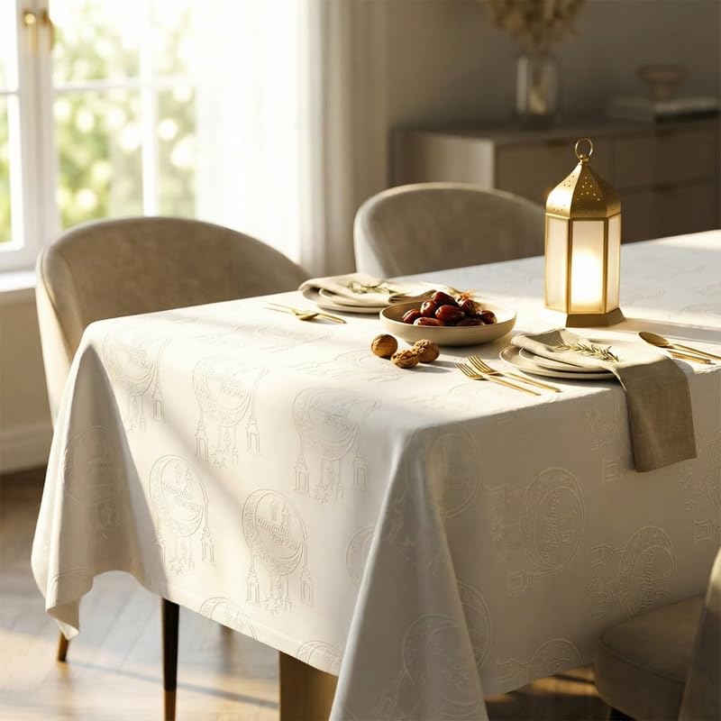 INTex HOME - مفرش سفرة من الشانيل بأجواء رمضانية، ديكور بسيط وأنيق وناعم ومقاوم للتجعد لمساحات تناول الطعام والمعيشة من انتيكس هوم، مقاس 200 × 250 م- أوف وايت × بيج